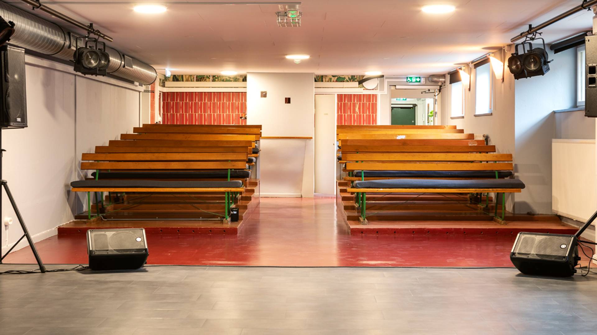 Scenen är tillgänglighetsanpassad med ramp, RWC och armbågskontakter till dörrar.