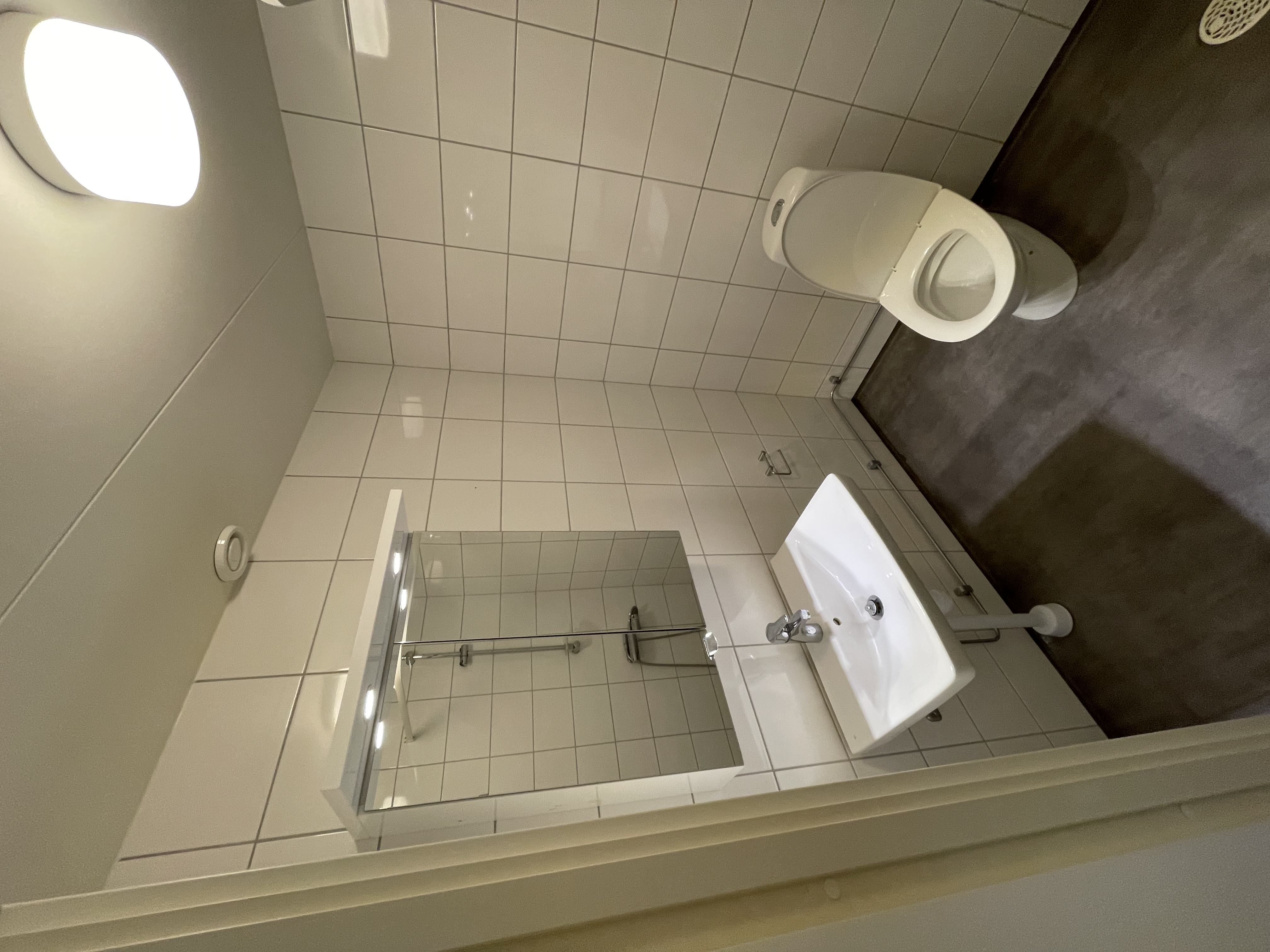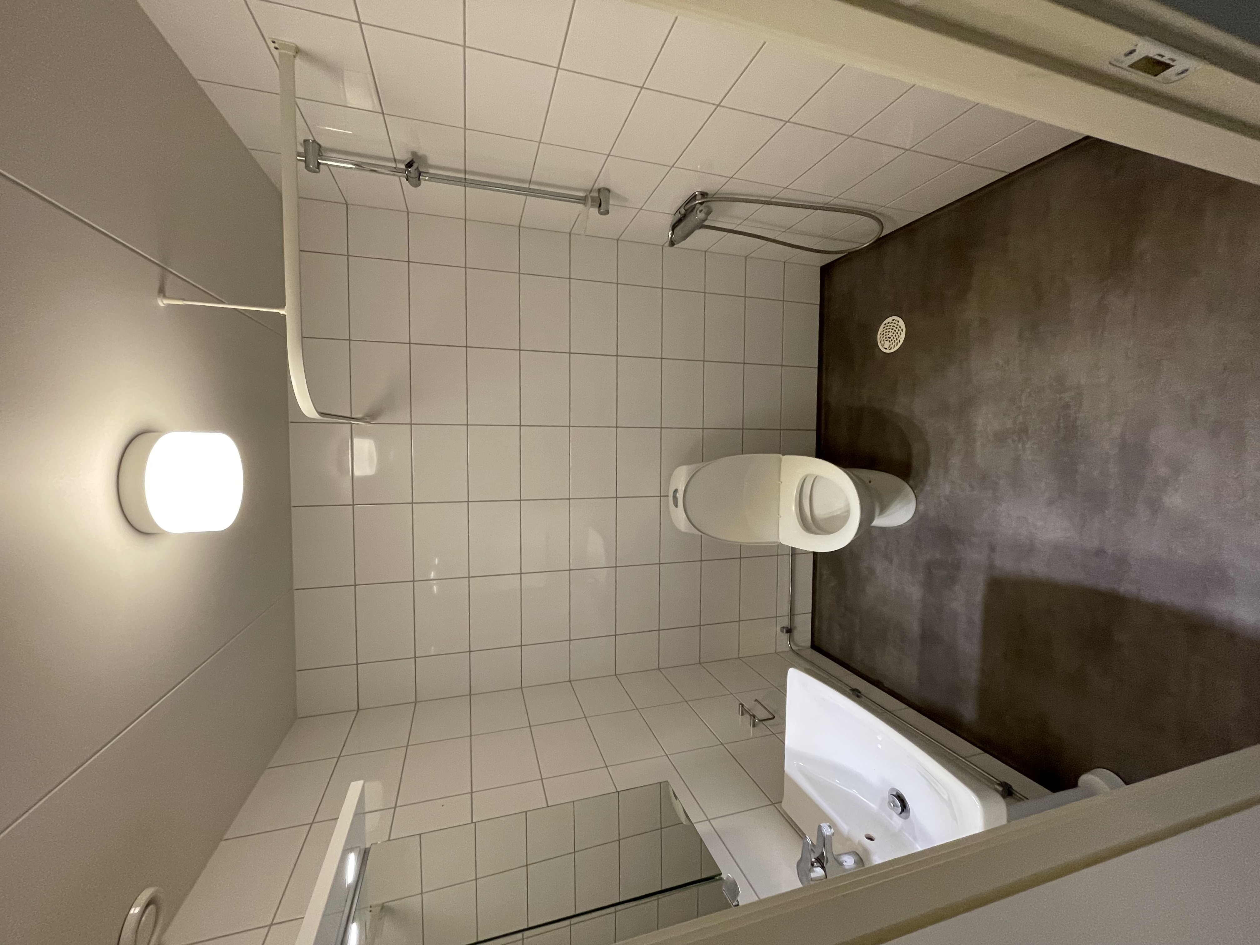 Utrustning: Dusch, tvättställ och wc stol
