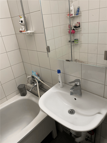 Utrustning: Dusch, tvättställ, wc, badrumsskåp