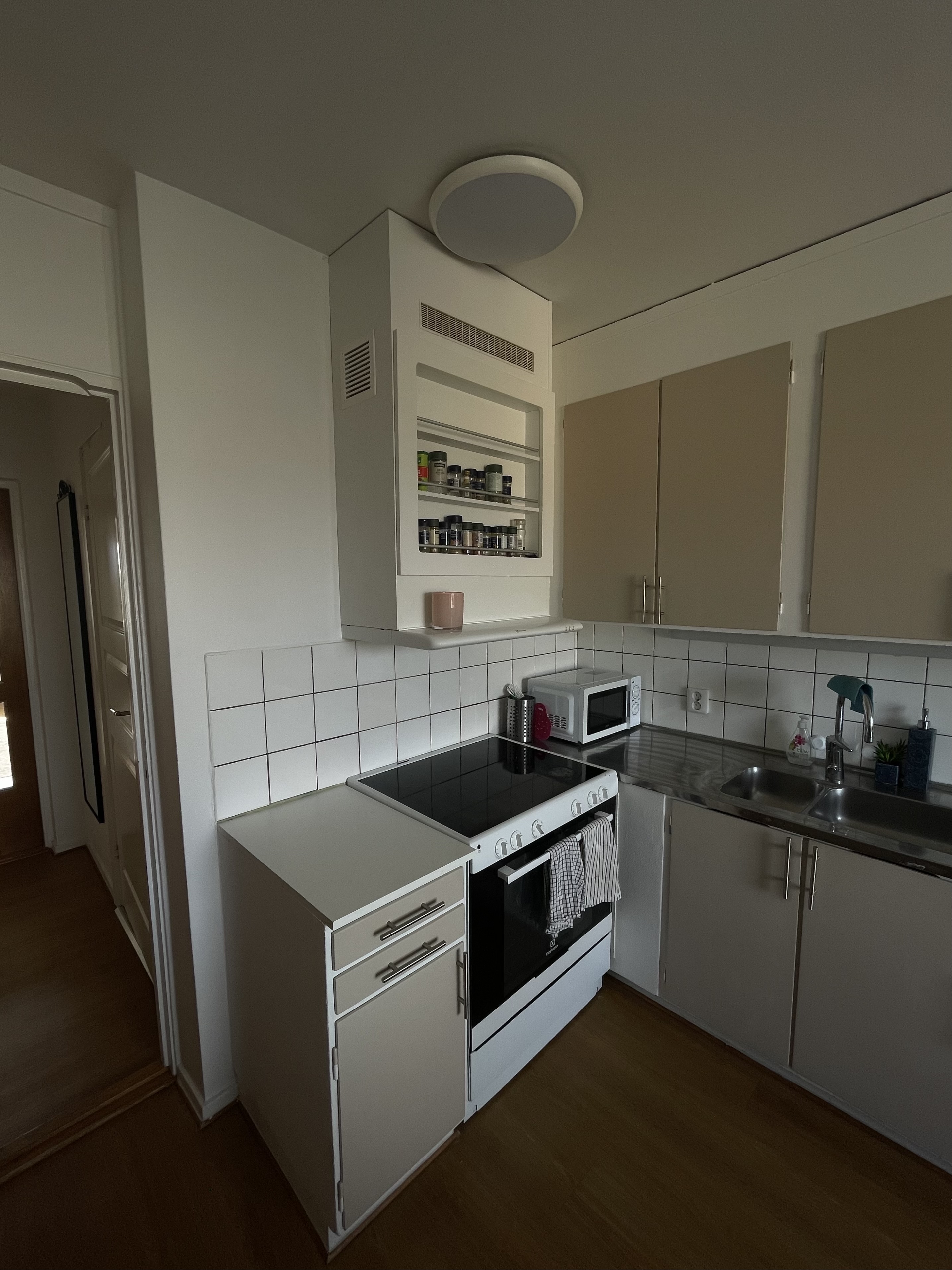 Utrustning: Spis med keramikhäll, kyl/frys kombi, kolfilterfläkt med kryddhylla, diskmaskin
