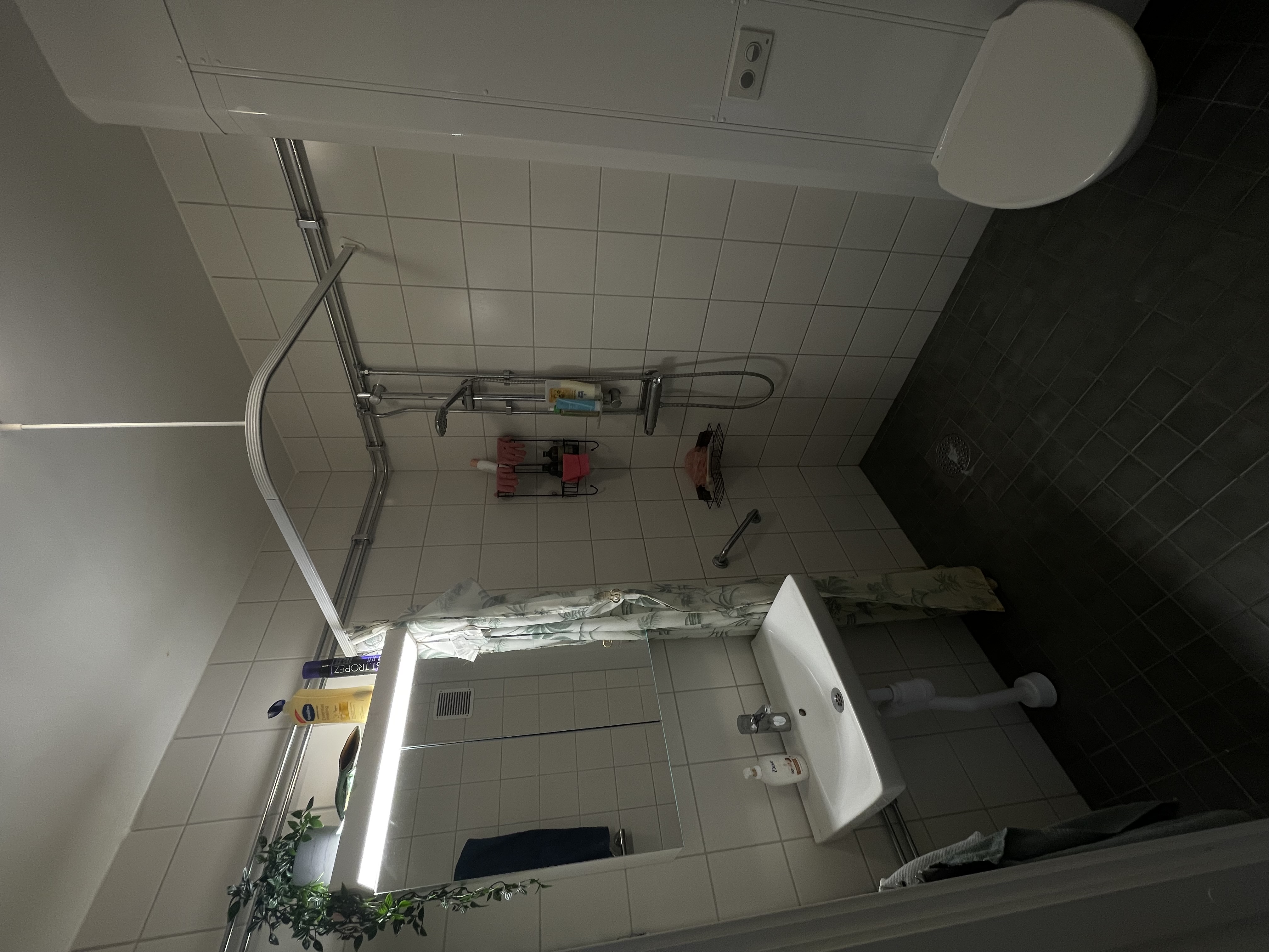 Utrustning: Duschhörna med draperi, wc-stol, tvättställ, handdukstork
