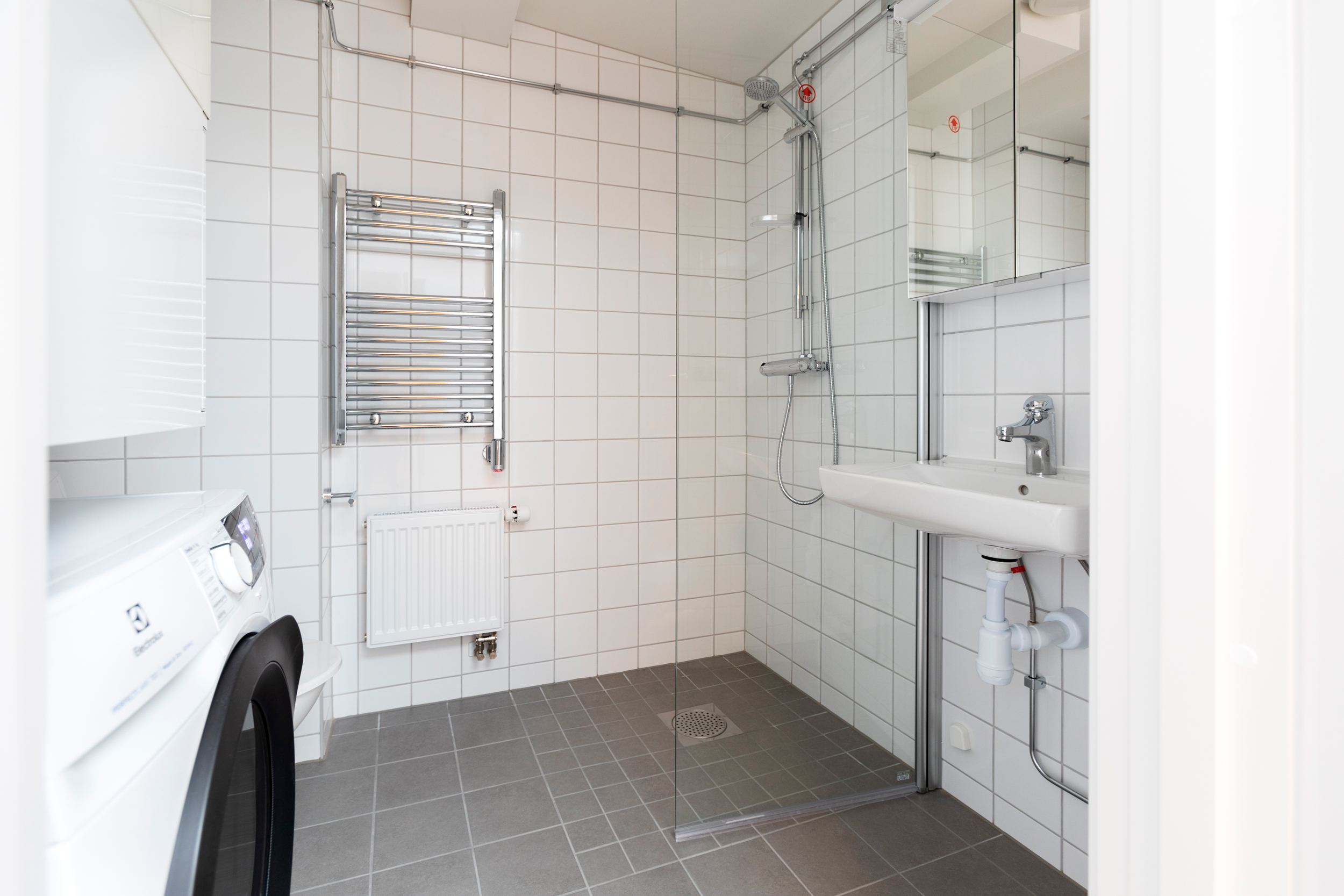 Utrustning: Dusch, Electrolux kombimaskin, Handdukstork