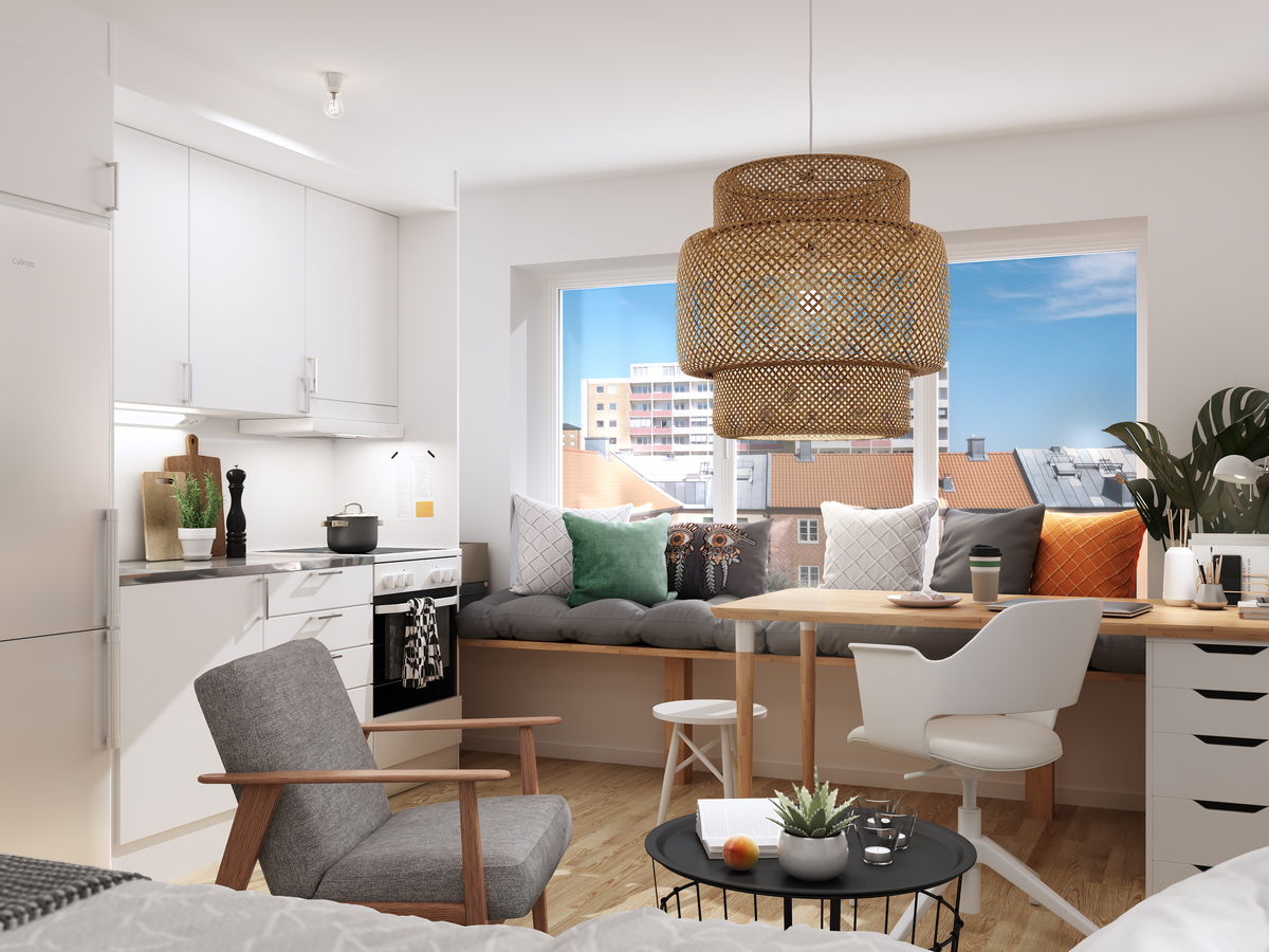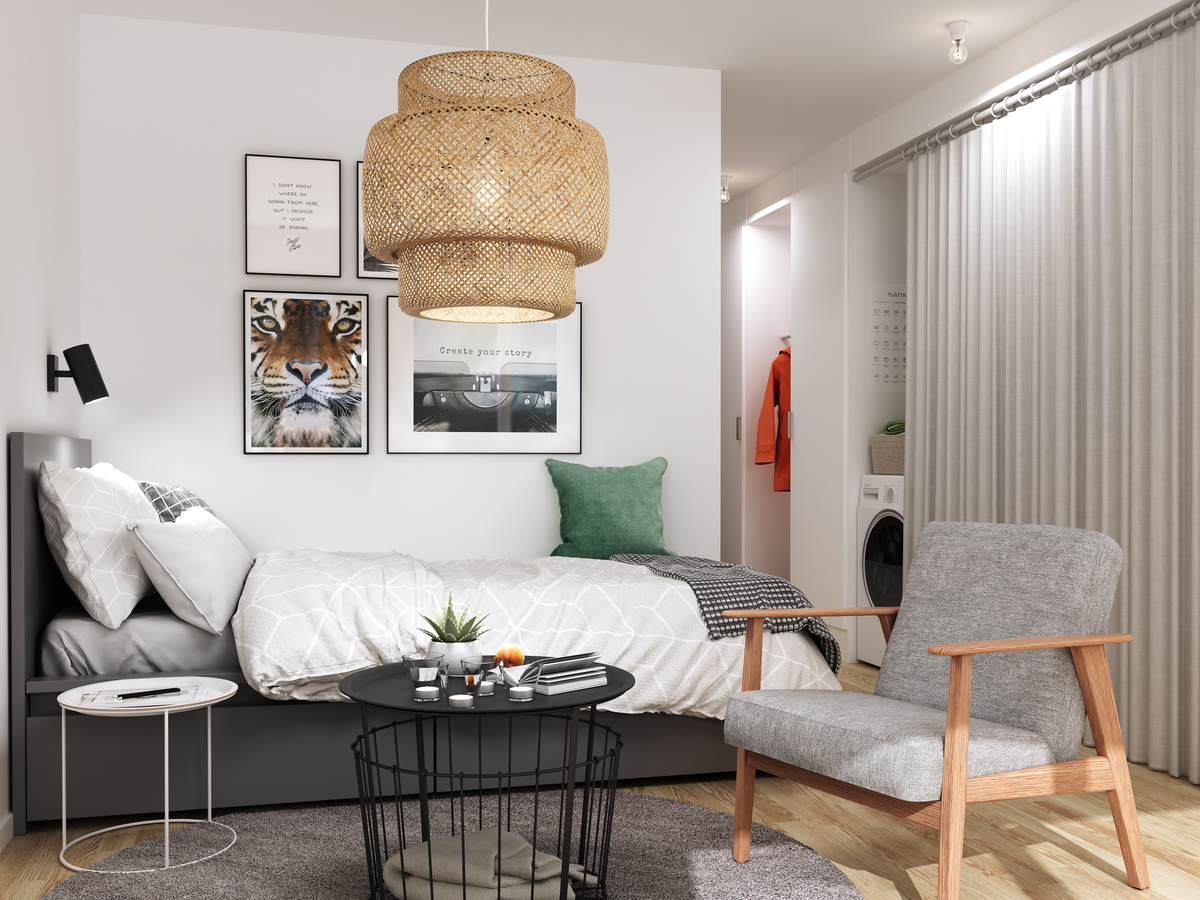 Nu är denna studentlägenhet ledig. En ytsmart etta med öppen planlösning och moderna materialval. Alla lägenheter har egen tvättutrustning med kombinerad tvättmaskin/torktumlare. Från marklägenheterna är det en utgång direkt till inhägnad uteplats. Se planlösningen för att kunna bedöma om lägenheten motsvarar dina önskemål.